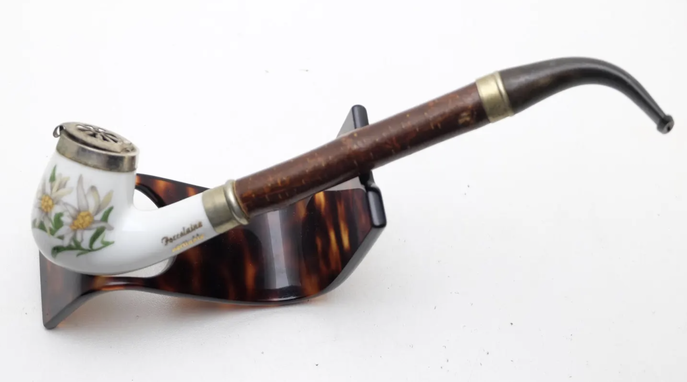Hunter Nice Vintage Smoking Pipe Porcelaine EP Ring